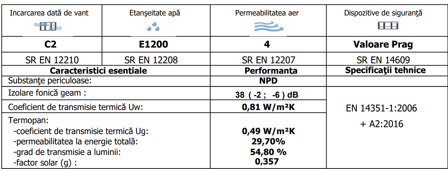 · Coeficient de transmisie termica Uw=0.81 W/m2K