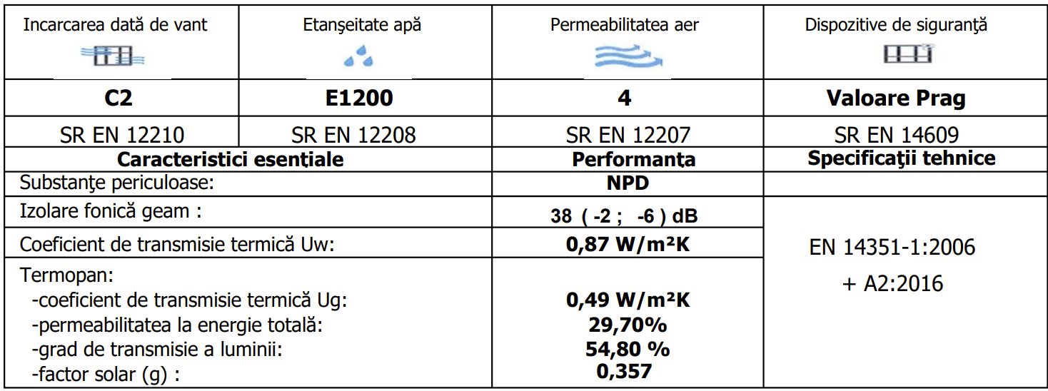 · Coeficient de transmisie termica Uw=0.87 W/m2K